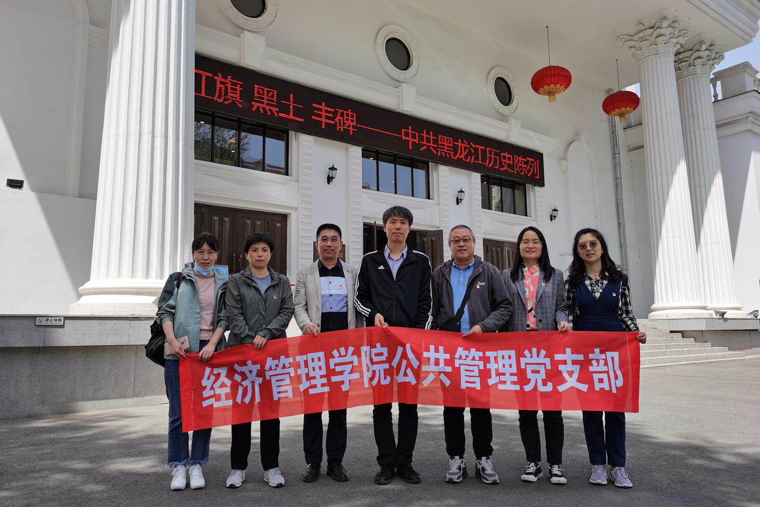 5月26日,太阳成集团tyc9728公共管理党支部开展主题党日活动。部分党员和老师来到中共黑龙江历史纪念馆,参观《红旗·黑土·丰碑》主题展览。