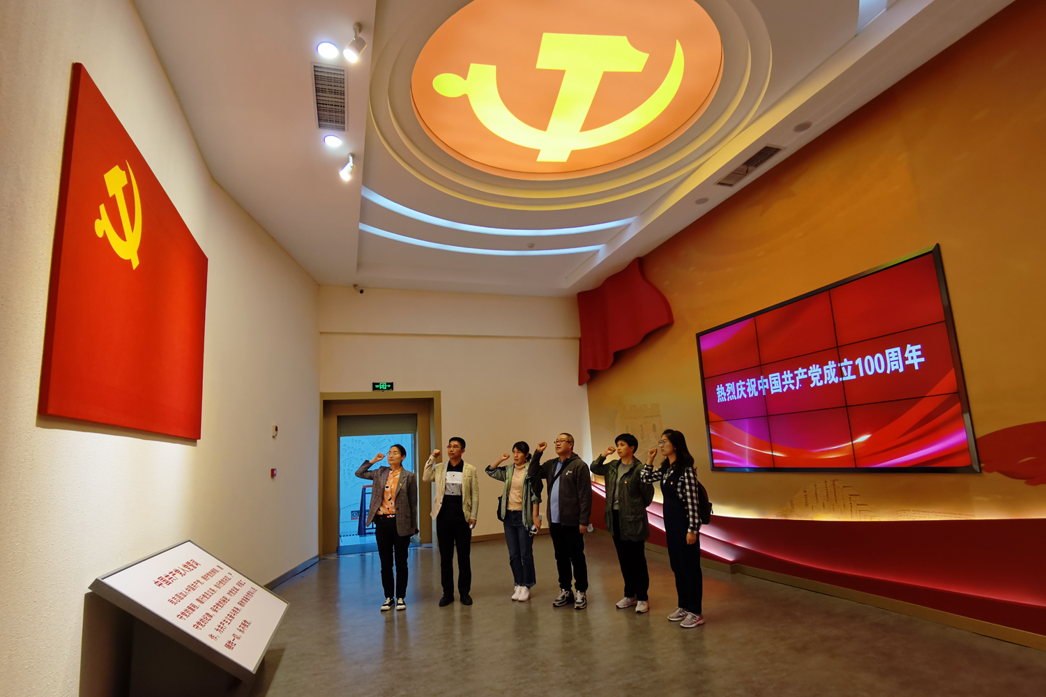 参观结束前,公共管理党支部书记韩国元同志带领党员教师在党旗前庄严宣誓,重温入党誓词。