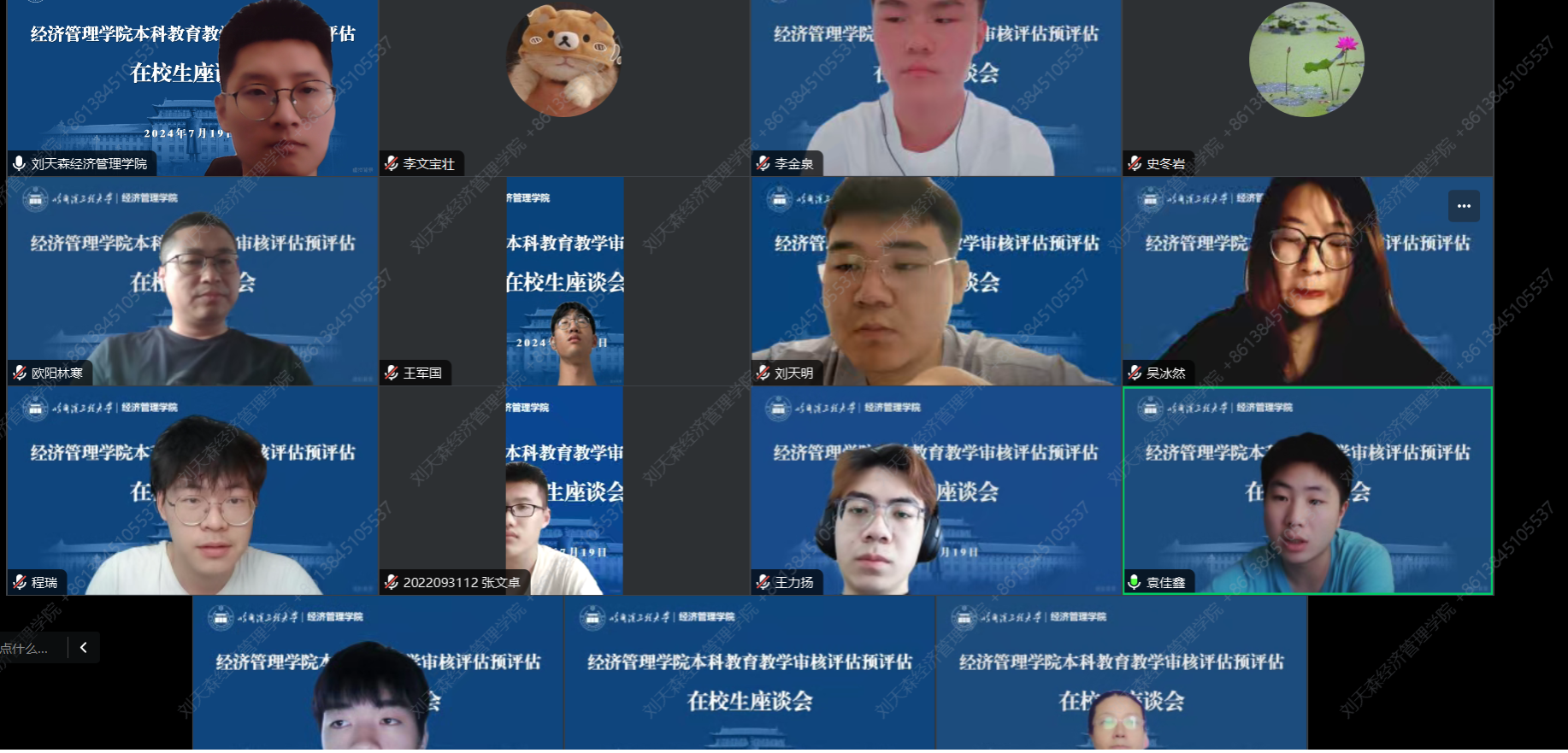 7月12日至7月17日,学院根据预评估工作相关要求,整理专家线上评阅的各项教学材料,包括学院自评估报告及支撑材料、专业培养方案、课程录制视频、课程试卷(含独立实验)、毕业论文、专业实习等。7月18日至7月19日,学院组织评估专家依次对教师代表、学院领导、在校学生、毕业生、用人单位进行线上访谈,共计30余位教师、20余位学生及3家用人单位参与调研,获悉了不同群体对学校及学院本科教育教学工作的评价观点。