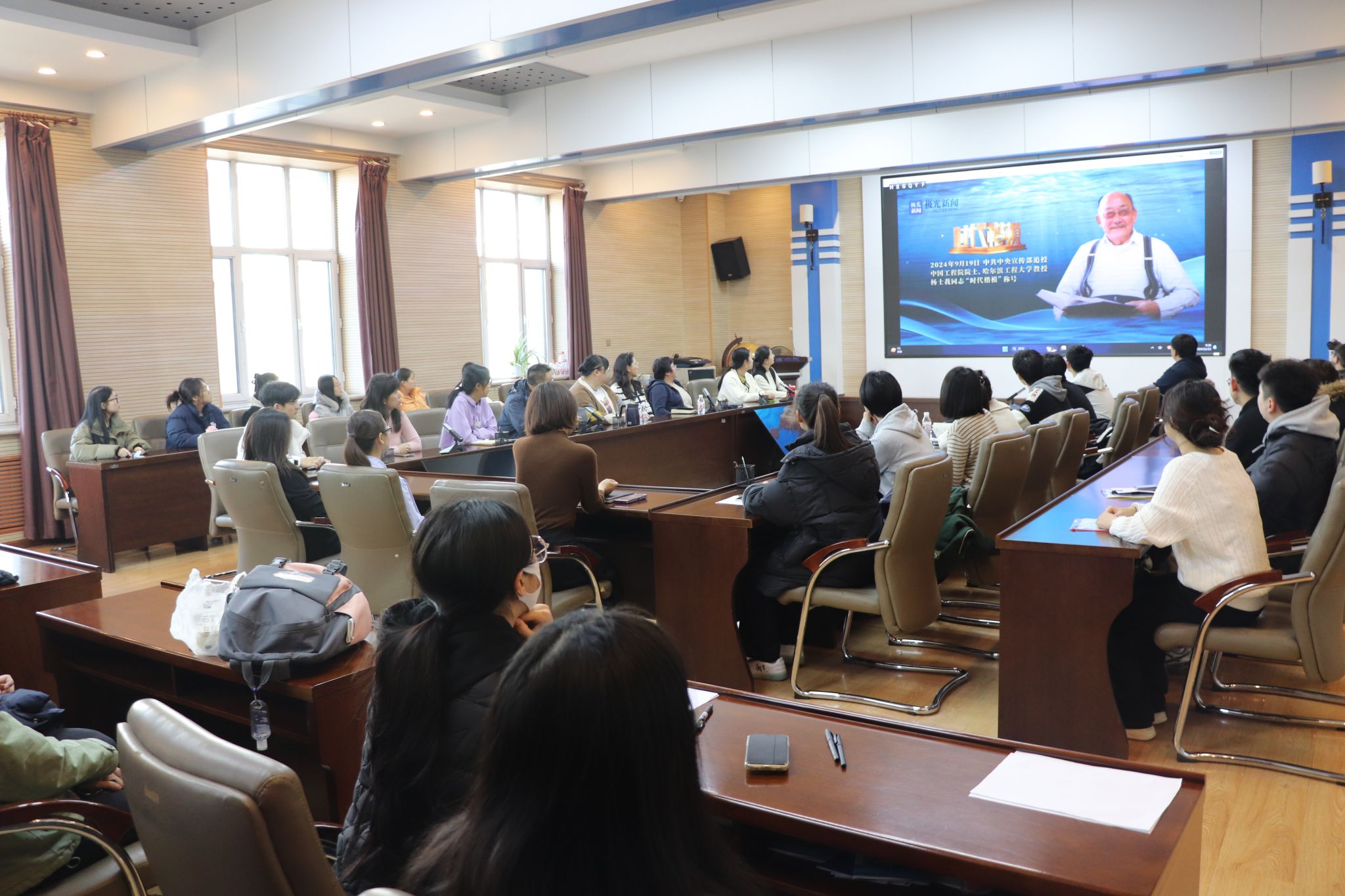 11月13日,黑龙江省委在我校举办“时代楷模”杨士莪同志先进事迹首场报告会,学院师生倾听了“时代楷模”杨士莪同志先进事迹首场报告会,杨士莪院士先进事迹和崇高精神在全体师生中引发热烈反响。