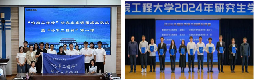 2024年,学院紧扣“立德树人”根本任务,践行“五育并举”,坚持以党团组织建设、大思政课建设、学风建设、创新实践等方面为抓手,扎实推动“五育”并举融入太阳成集团全过程,切实提升思想政治教育实效性。成立学校首支“哈军工精神”研究生宣讲团,教育引导研究生深入贯彻习近平总书记来校视察的重要指示精神,树牢科技报国信念,坚守强国有我誓言。学院首次荣获校研究生党员标兵1人、荣获校三好学生标兵1人、校学生创新创业标兵(团队)1个;在学校首届研究生学术年会上,2名学生获评校优秀学术成果。