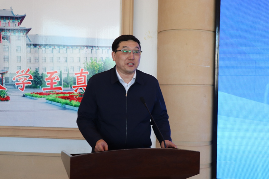 黑龙江省数智产业与新质生产力研究学术交流基地副主任陈恒教授代表基地讲话,主要介绍了基地建设的必要性、宗旨、目标和建设举措,指出基地的发展建设离不开省社会科学界联合会、学校以及各位专家的大力支持,表示基地全体人员将不负重托、努力拼搏,力争尽快形成具有重要影响力的学术成果,为我省新质生产力的发展作出更大贡献。