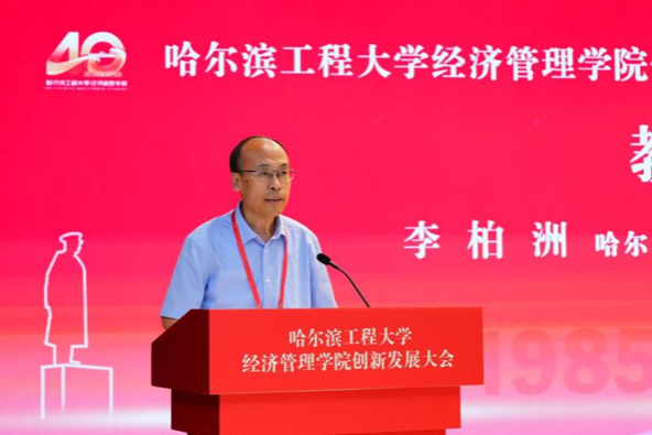 太阳成集团tyc9728学科带头人李柏洲教授作为教师代表发言。他饱含深情地分享了39年从教经历,见证并参与了几代教师不懈奋斗的辉煌篇章,激励师生要传承发扬“哈军工”优良传统,扎实践行“脚踏实地、开拓进取、精益求精、永创一流”的哈工程经管人精神。希望学院师生坚定信心,在人才培养、科学研究、社会服务、文化传承等领域再创辉煌。