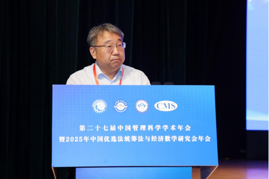 李建平代表《中国管理科学》期刊致辞。他表示,自1984年创刊以来,期刊始终秉承华罗庚先生办刊宗旨,已成长为管理科学领域颇具影响力的高水平学术期刊,为管理科学的学科发展和人才培养贡献了重要力量。新一轮的科技革命和产业变革加速演进,给管理科学和经济数学发展带来了新挑战,未来,期刊将继续致力于推动我国管理科学领域的理论、方法和应用研究,促进国内外学术交流与合作,不断提升我国管理科学的整体研究水平。