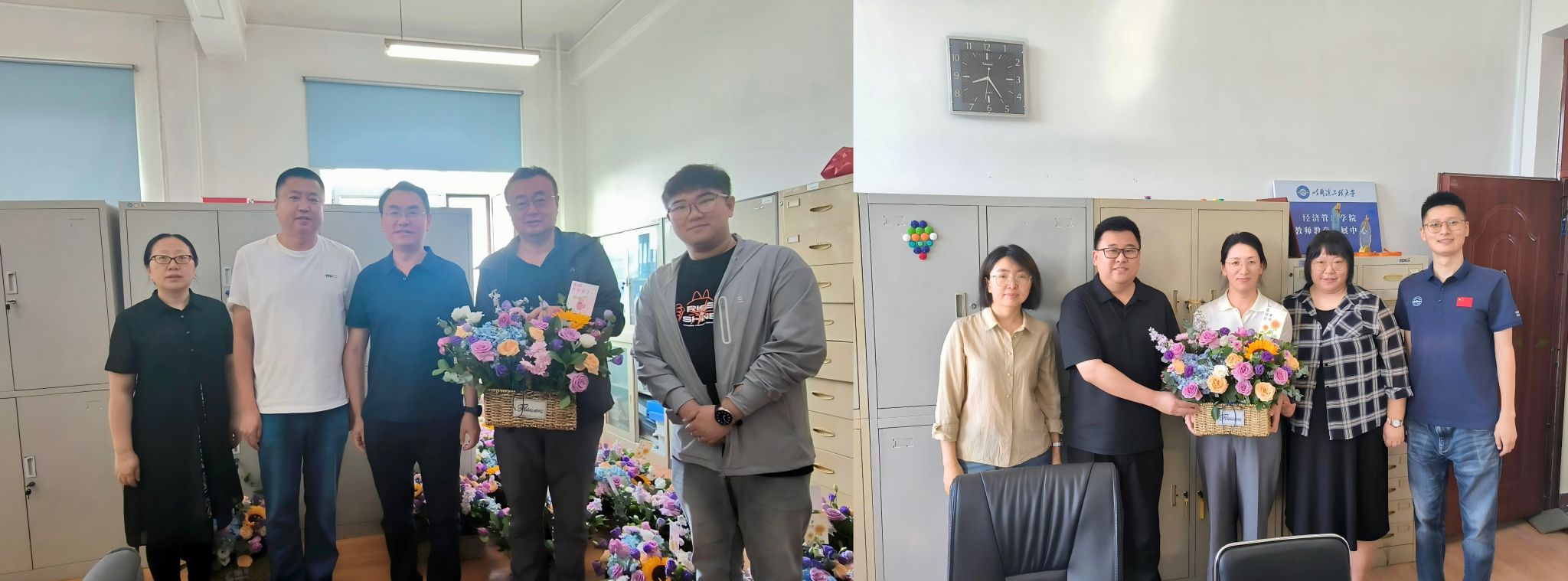 2025年9月10日上午8:10分,在第41个教师节来临之际,学院院长陈恒、党委书记于云亮代表学院走访二级部门,看望慰问工作在一线的教职员工,向所有教职员工致以节日的问候,并送上关怀和祝福。