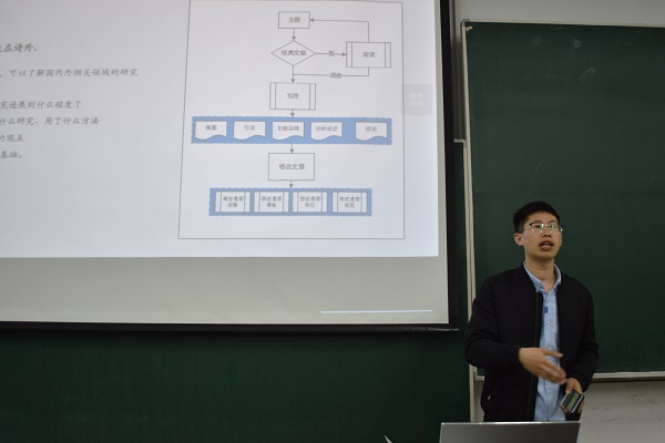活动开始,赵鹏飞先向大家做了自我介绍,以如何篡写论文和文献查找与阅读两个方面为框架对大家进行培训,向大家介绍了写作流程、一般框架、规范格式、文献引用和如何总结等方面的内容,同时详细地向大家展示了查找相关文献的操作方法,赵鹏飞和大家进行了启航杯比赛问题的交流。19时40分,培训活动结束。