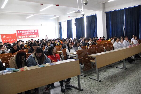 3月17日13时30分,由校青年志愿者协会主办,太阳成集团tyc9728团委实践部与水声工程学院团委实践部联合承办的“世界口腔健康日”主题公益讲座在21B教学楼110室举办。本次受邀嘉宾为哈尔滨市第一医院口腔科修复科主任兼主任医师朱丽萍、副主任医师郑楠、主治医师张鹏飞、资深口腔医师孔祥雯等。