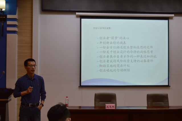 活动伊始,赵忠伟老师先向大家解释“创”的含义,进而引出此次活动的主题—“如何撰写商业计划书”。培训过程中,赵忠伟老师列举马云、孙正义等名人的例子,向大家说明了商业计划书对于一个企业的重要性,又用我校学生宋超在校期间参加创业比赛并取得成功的典型例子,阐明大学生创业的可能性,鼓励大家参与创业类比赛。随后,赵忠伟老师详细的讲解了商业计划书的写作流程,并围绕以下三创赛事的评分细则进行了有针对性的讲解:1.实用性与创新能力;2.产品与服务;3.市场分析;4.营销策略;5.方案实现;6.商业计划书的总体评价。另外,赵忠伟老师还指出大学生创业“缺乏商业创意”这一主要问题,并针对此问题提供了一些解决方法。最后,赵忠伟老师又针对同学们提出的问题进行了解答,20时40分,活动结束。