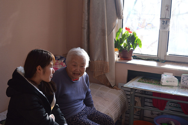 当天天气寒冷,路面结冰光滑,同学们经过几番周折到达了敬老院,在敬老院门口遇到了正沐浴在阳光下的两三个老人,老人们向同学们招手,对同学表示欢迎。同学们一路上一边向老人们打招呼,一边将带来的礼物赠给老人,献上祝福。在敬老院负责人的引领和建议下,全体同学分为两组,分别与一楼与二楼的老人们交流互动,敬老院的老人们年龄性格差异较大,精神饱满性格外向老人们看电视、打麻将或聊天,而有的老人由于身体或性格原因孤卧于床或独坐于椅,同学们的无疑为他们的生活添加了几分色彩,减少了精神上的空虚。同学们认真倾听老人们讲述过往,并给老人描述精彩的故事。14时20分活动结束,同学们放下心中的不舍,与老人告别。