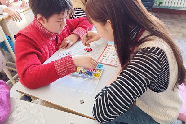 志愿者们进入教室,跟小朋友们打招呼,交朋友。开始简单介绍几何结构性质以及在生活中的应用。带领小朋友们做了小手工。小朋友们在活动中积极主动,现场气氛热烈帮助他们做手工,询问他们实践过程中的问题,关心并参与手工制作过程中,帮助小朋友们,做手工,用各种各样的工具,做出漂亮的东西。整个过程弥漫着笑声与欢乐。下午2时45分,随着放学铃声的响起,活动也开心的结束了,小朋友们与志愿者们告别。