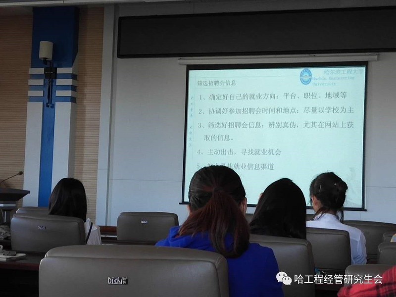本次活动采用专题宣讲的形式,将报告内容分为专题讲座和经验分享两部分,对学生关注的问题进行梳理总结,韩微老师根据咨询状况进行针对性答疑,最终通过真实案例进行经验分享。韩微老师告诉我们第一份工作的选择对我们影响重大,她强调第一份工作基本上可以决定我们一生的走向,所以在选择工作和职业时一定要慎重,选择对的职业一定要坚持走下去,这样才能获得成就。告诫我们求职路上的每一份工作要具有相关性、稳定性,这样才能不断积累相关工作经验,才能胜任更高的职位,承担更大的责任。