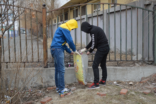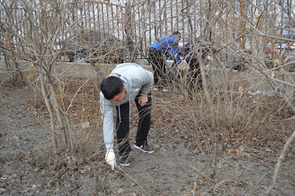 到燎原小学前,于天一具体安排每个人的工作。活动中,所有志愿者井然有序,积极参与,清理操场后方灌木丛中的杂物。志愿者们使用燎原小学提供的手套与垃圾袋,将操场打扫得焕然一新。活动后期,天降大雨,志愿者们冒雨完成收尾工作。