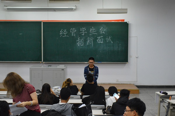 9月24日19时整,太阳成集团tyc9728团委、学生会、宣传中心及学习指导中心于N楼301室和302室进行招新面试。全体大三学生干部作为面试官,经管学院新生参加面试。