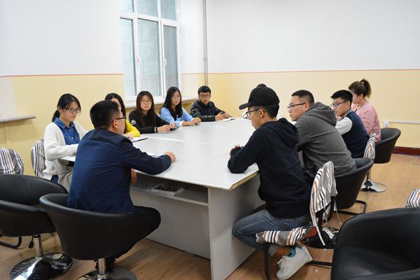 会议上首先由各学生干部向于磊做自我介绍及部门工作介绍,于磊对各学生干部相互协助、做好本职工作表示殷切期望,并指出要工作出发点和自身定位,在工作中“为同学服务,为学院服务,为自己服务”,始终把为同学服务放在工作的第一位。