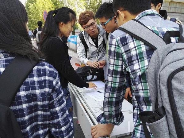 宣传前,所有人员认真准备,细致分工,精心制作宣传海报、手册和报名表,让同学们了解到本次竞赛的相关内容。报名现场宣传部及实践部成员不仅介绍了此活动的目的及意义,更细心地为不了解比赛的同学讲解比赛的规则和流程。同学们仔细询问,积极踊跃报名。相关比赛更详细的内容可进入微信号heujgtw查看。