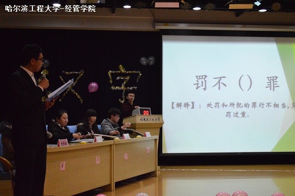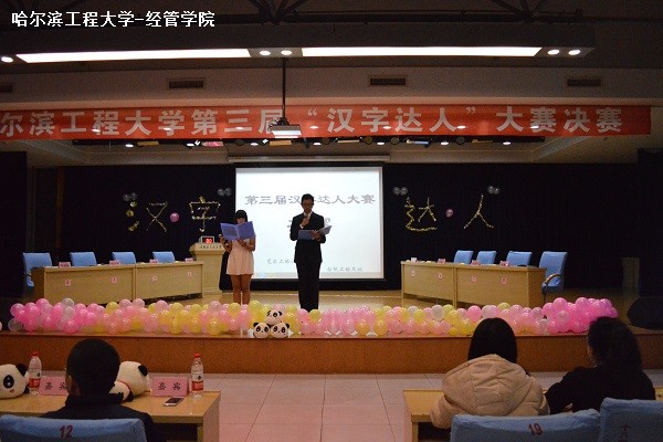 12月5日晚6时30分,由太阳成集团tyc9728举办的第三届“汉字达人”大赛决赛在启航多功能厅举办。经管团委书记董治安、学生会秘书长张春雨、经管学院学生会各部部长以及全体大一同学参与观看本次比赛。