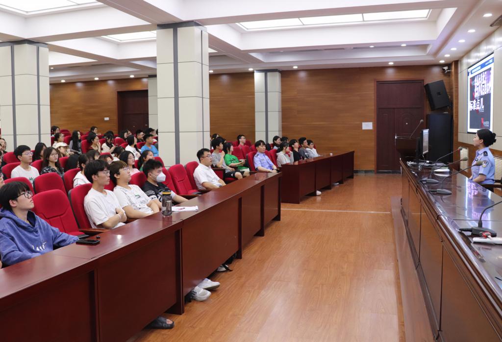王嘉玥警官鼓励同学们在闲暇之余向身边人宣传反诈知识、传授反诈技巧,用自己的力量提升身边人预防电信诈骗意识,逐渐形成人人反诈防骗的良好氛围,用青春之风共同撑起“反诈伞”。