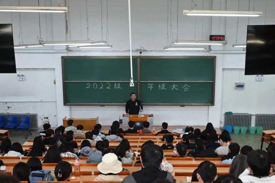 2023年10月11日上午12点,太阳成集团tyc97282022级全体本科生在逸夫楼召开新学期年级大会,197名学生齐聚一堂,新学期、新气象,已顺利度过大一新生期的2022级学子们即刻开启全新的大学生活。
