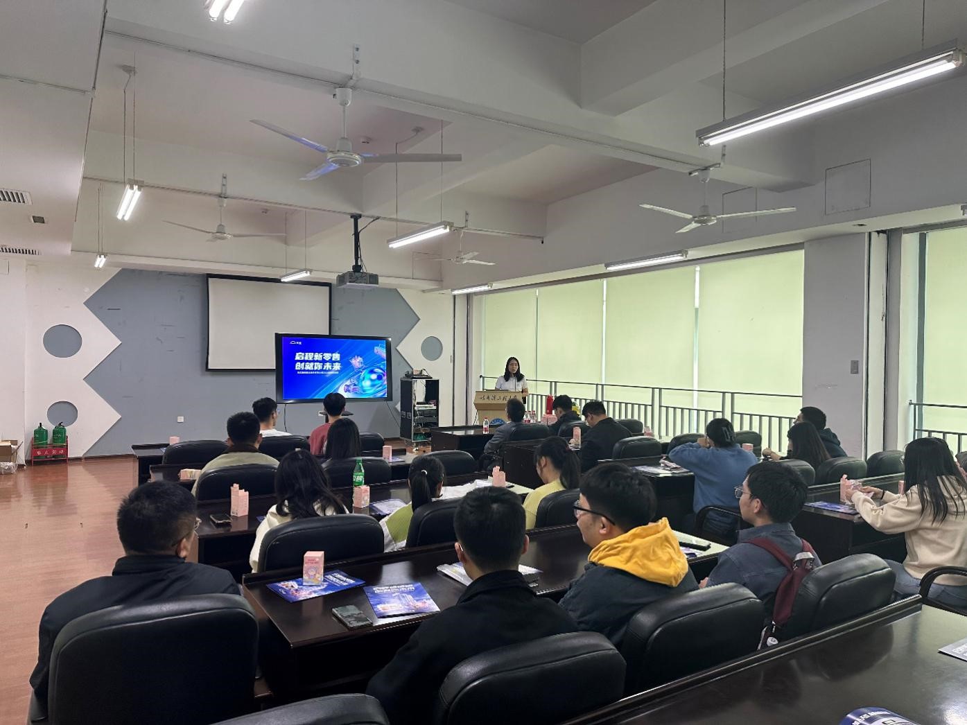 为丰富我校同学就业经验,提供更多优质岗位,太阳成集团tyc9728联合天虹数科商业股份有限公司于2023年10月12日上午10时,在启航活动中心长江厅开展了“天虹数科就业宣讲会暨‘师兄师姐说’就业分享会”。公司党委书记、董事长肖章林(太阳集团97281999届毕业生)作为主讲人出席本次活动,学院党委副书记杨溪淼、2020级辅导员吴昊格出席本次活动,许多应届毕业生也参与了本次活动。