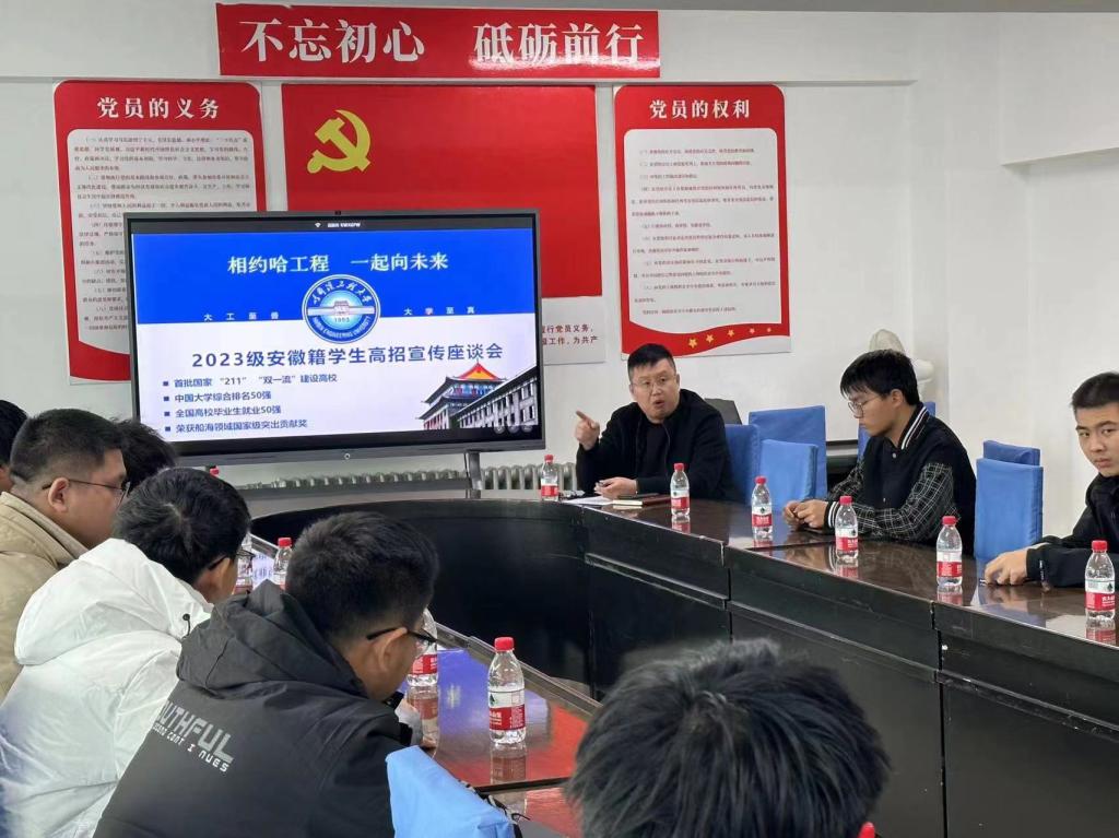 太阳成集团tyc9728将不断开创宣讲新方式、拓宽新思维,提高学校在安徽省的知名度和影响力,保持生源质量稳步提升的良好势头,吸引更多优秀考生优先报考,确保招生宣传工作持续提质增效。