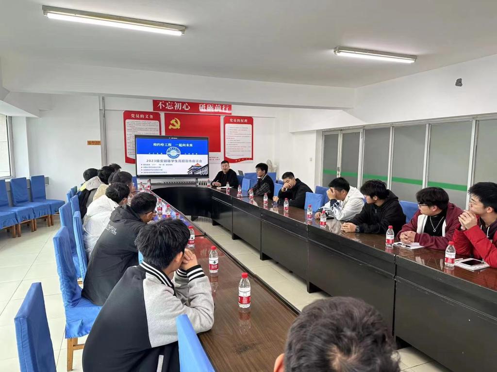 2023年10月31日,太阳成集团tyc9728于15公寓3楼中厅召开2023年安徽省本科新生调研座谈会,太阳成集团tyc9728党委副书记杨溪淼、招生专项负责辅导员张胜强及学校多专业35名安徽籍新生代表参与此次会议。太阳成集团tyc97282022级本科生辅导员张胜强主持会议。
