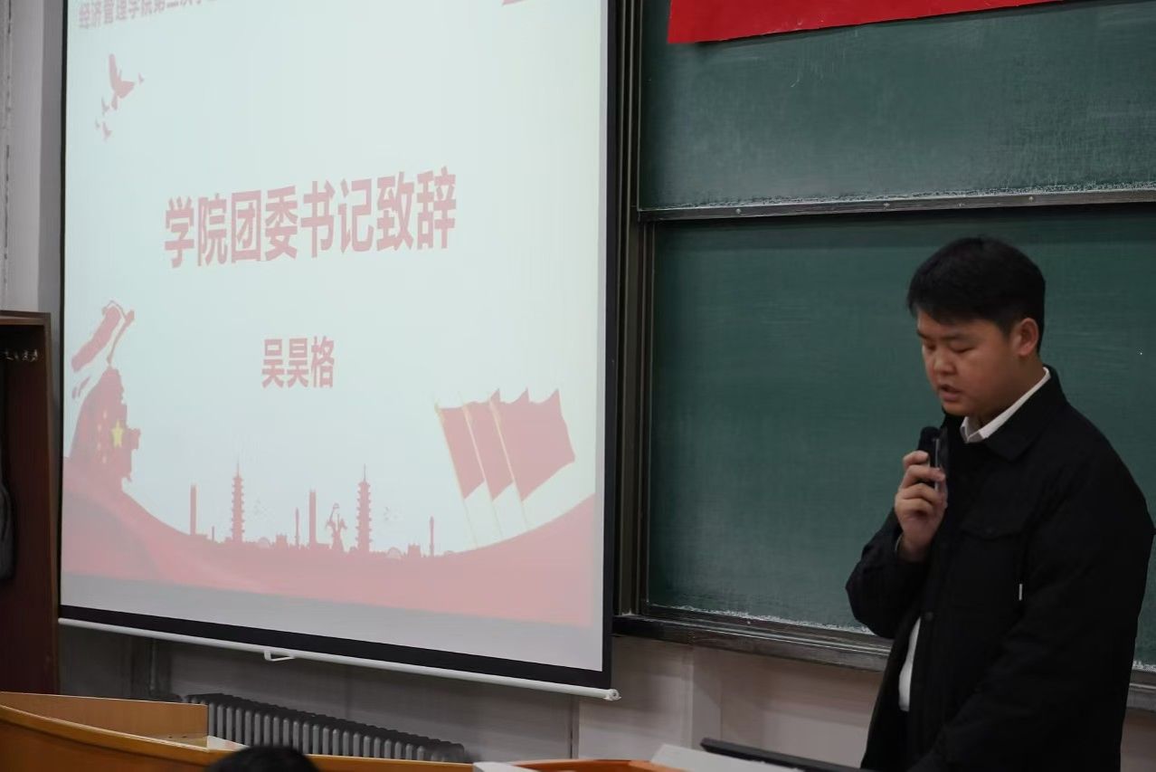 吴昊格代表学院团委向参会人员致以诚挚问候,他指出太阳成集团tyc9728全体本科生应当勇担使命,厚植爱国情怀,锤炼学习能力,积极发挥互帮互助、服务同学的作用,在学院内形成良好的风气,始终将“成长为有理想、敢担当、能吃苦、肯奋斗的新时代好青年”作为自己的目标。
