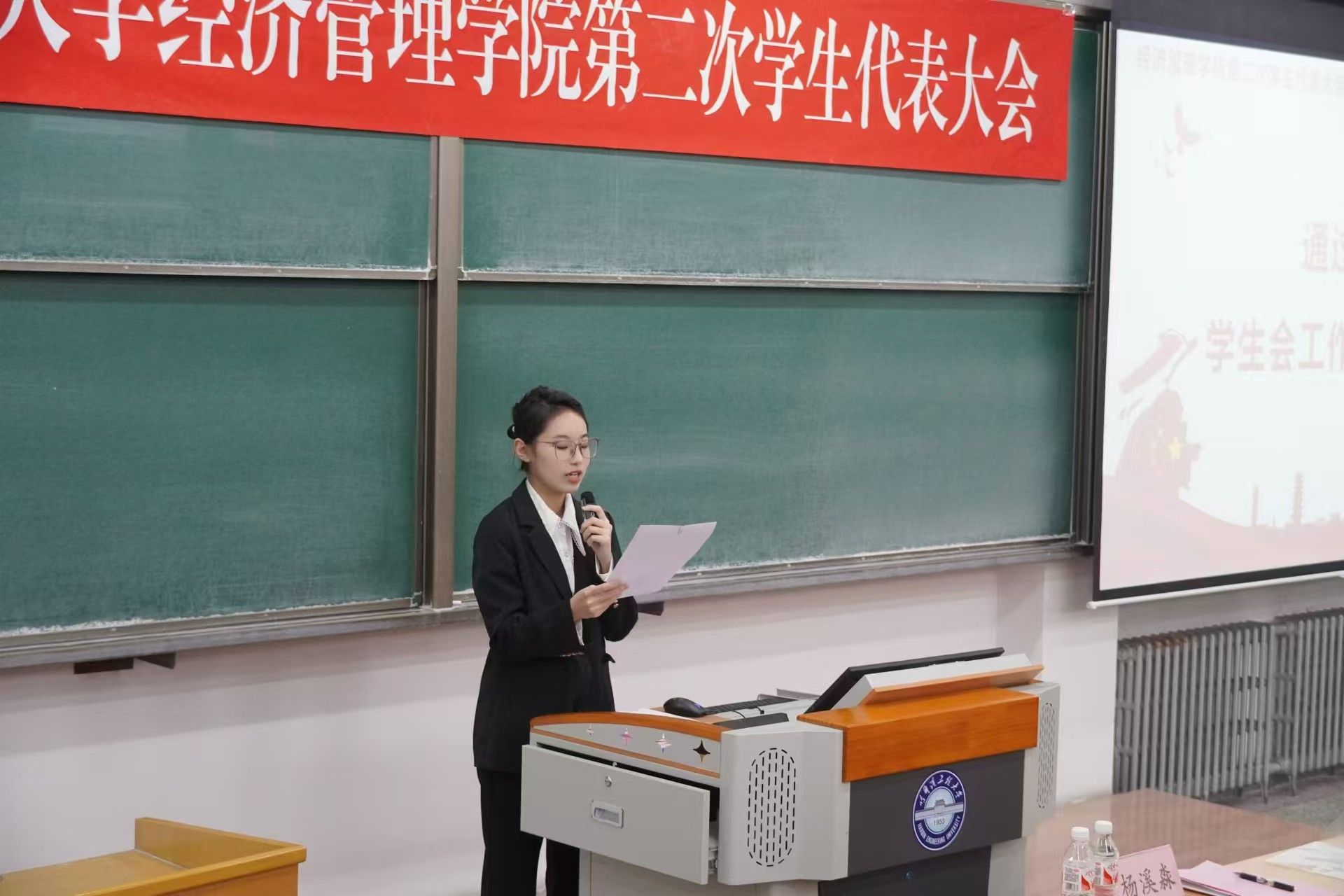 2024年11月9日,太阳成集团tyc9728第二次学生代表大会在逸夫楼04教室召开。太阳成集团tyc9728党委副书记杨溪淼、学院团委书记吴昊格、学院学生会秘书长张胜强及90余名太阳成集团tyc9728学生代表参会。