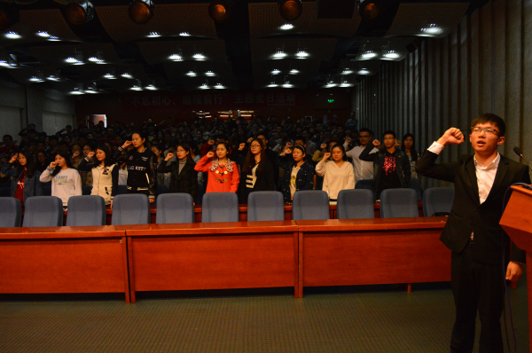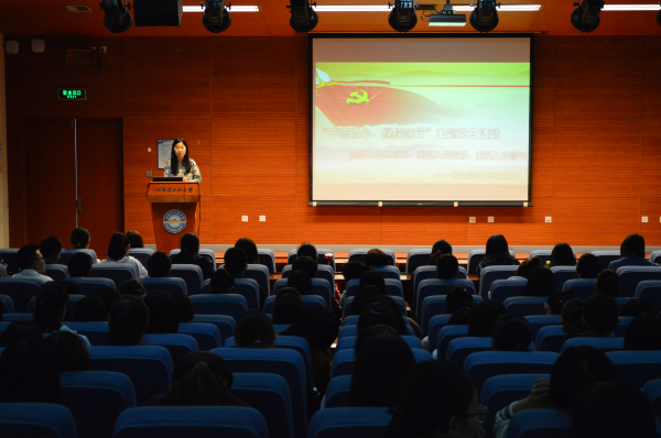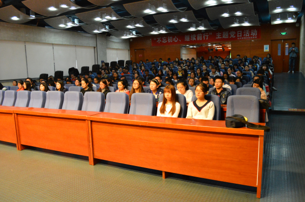 第二阶段,所有党支部于学术报告厅开展党日活动。伴随着嘹亮的国歌声,各党支部优秀党员代表首先进行发言,结合自身入党经历,回顾了入党动机、重温了入党志愿书和入党谈话,分享个人过去的经历和如今的感悟,以史为鉴,面向未来。最后在领誓人的带领下,全体党员面向党旗庄严宣誓,为共产主义事业奋斗终生。