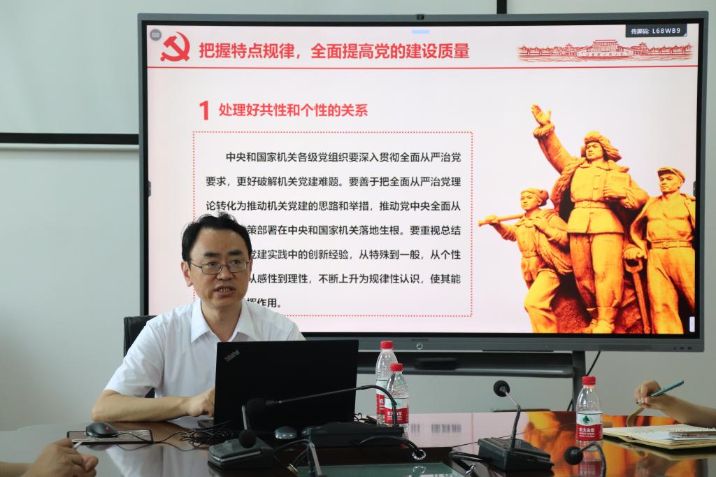 陈恒院长党课主要围绕,习近平总书记“深化全面从严治党、进行自我革命,必须从中央和国家机关严起,从机关党建抓起。”这个重要论断开展授课。同时他结合多年学习和工作经验,为新时代做好机关党建工作指明了方向、提供了路径。在党课中,陈恒院长还强调院直属支部党员要带头做到“两个维护”、深化理论武装、提升组织力、正风肃纪、把握特点规律、落实主体责任,以专家的标准律己,严守纪律,不断创新,做好本职工作。